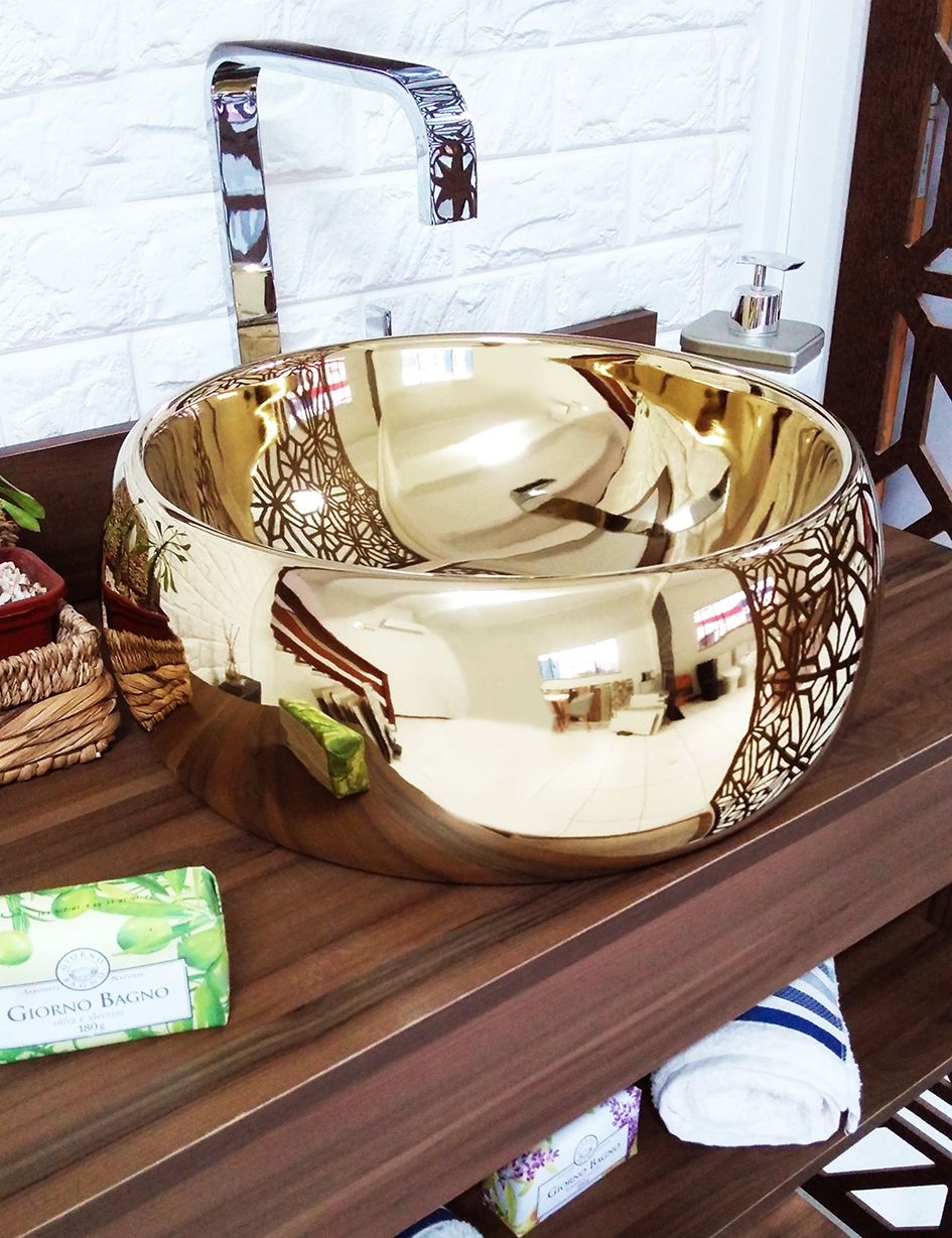 Inspirada nos diversos projetos arquitetônicos, sejam eles tradicionais ou modernos e nos diferentes elementos de decoração. A RC 7001 é uma das peças da completa coleção que a Reno oferece, na versão dourada. Todas com excelente qualidade cerâmica!