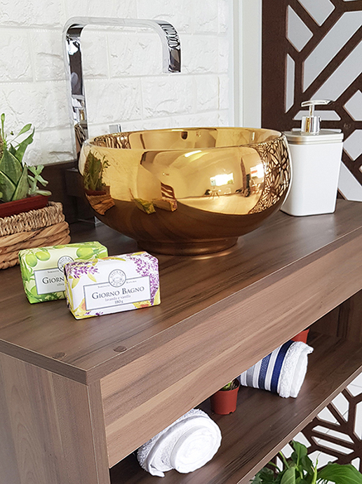 Inspirada nos diversos projetos arquitetônicos, sejam eles tradicionais ou modernos e nos diferentes elementos de decoração. A RC 401 é uma das peças da completa coleção que a Reno oferece, na versão dourada. Todas com excelente qualidade cerâmica!