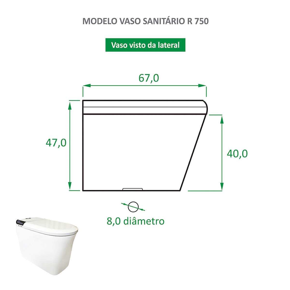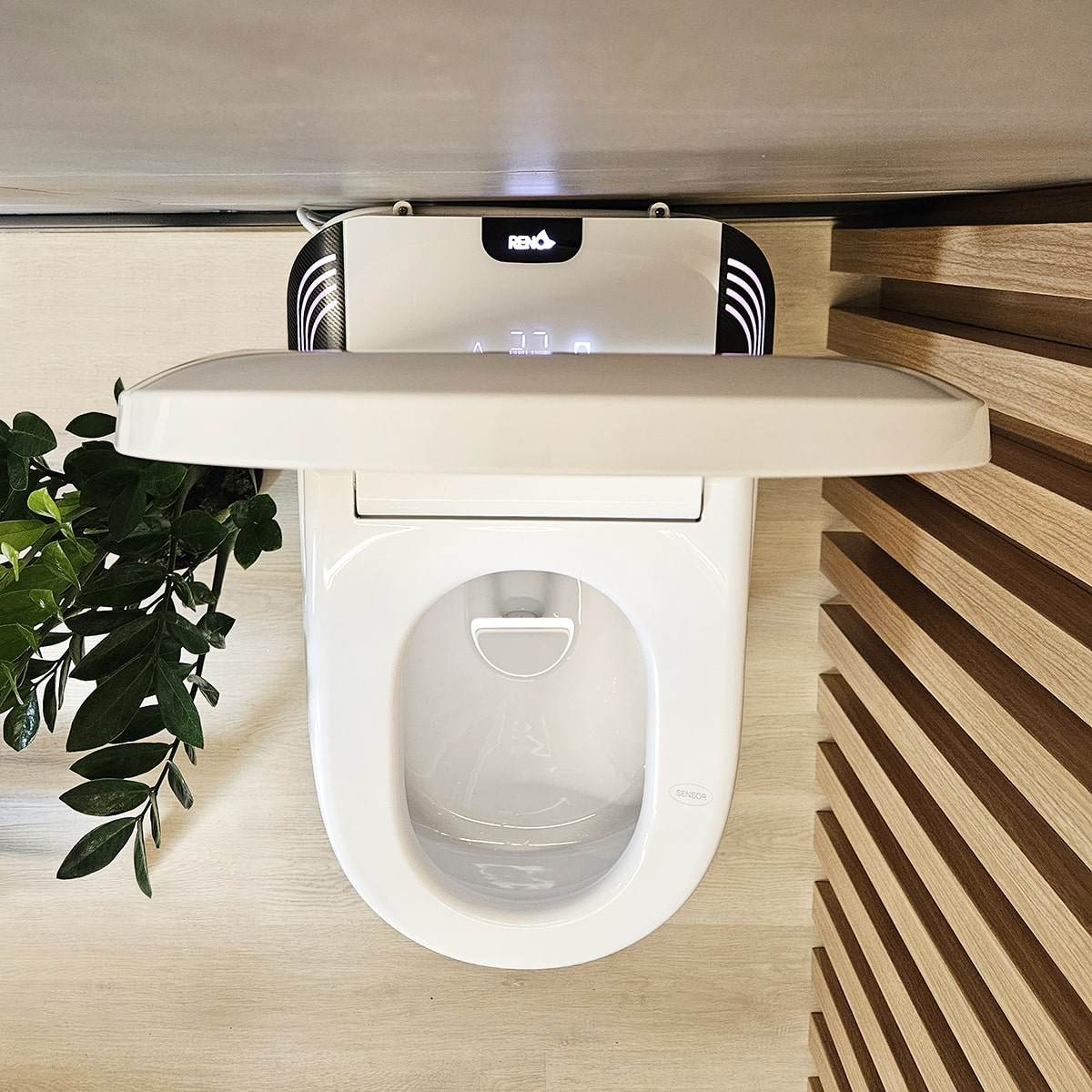 A linha de vasos sanitários da Reno, traz muita sofisticação, requinte e design. Produtos únicos para transformar seu projeto do sonho, em realidade! O vaso R 750 Inteligente é o que há de mais inovador em vasos sanitários. Possui sensor de presença, sistema UV de esterilização, abertura automática de tampa e assento, painel digital, controle remoto, assento aquecido, ducha higiênica, descarga jato Plus, e outras funções que garantem ao R 750 muita tecnologia, conforto e exclusividade!