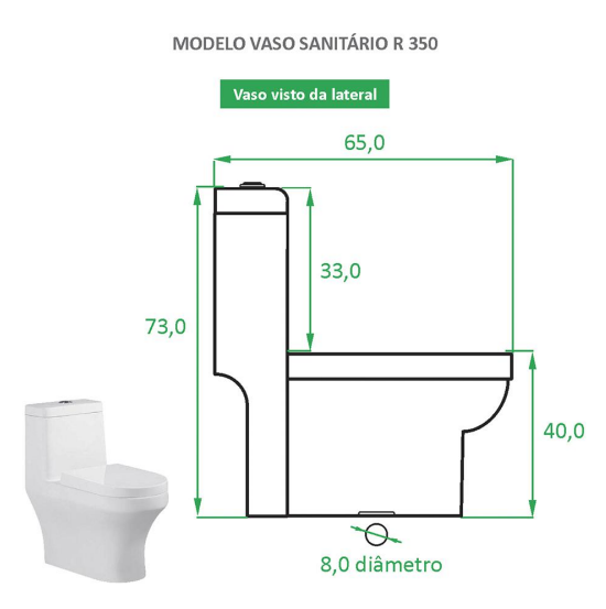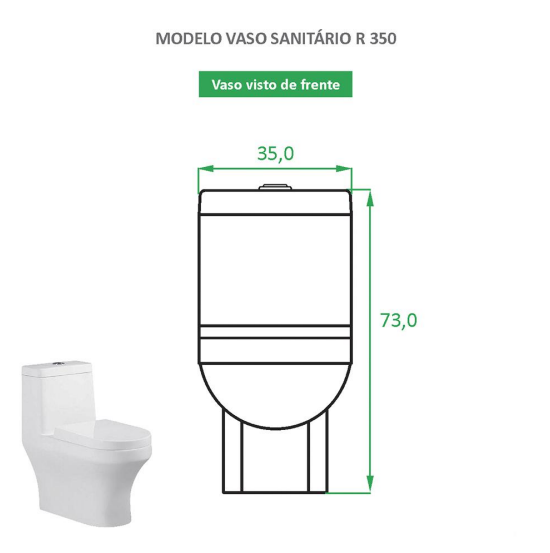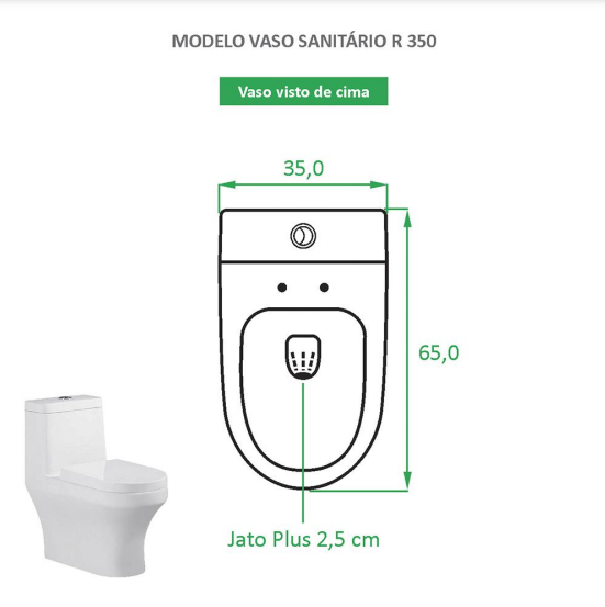 A linha de vasos sanitários da Reno, traz muita sofisticação, requinte e design. Produtos únicos para transformar seu projeto do sonho, em realidade! O vaso R 350 é feito em cerâmica, na cor branca, utilizando o mesmo processo de fabricação das louças, o que garante qualidade e durabilidade ao produto. Com assento de fechamento suave, sistema jato plus e economia de 40% de água.
