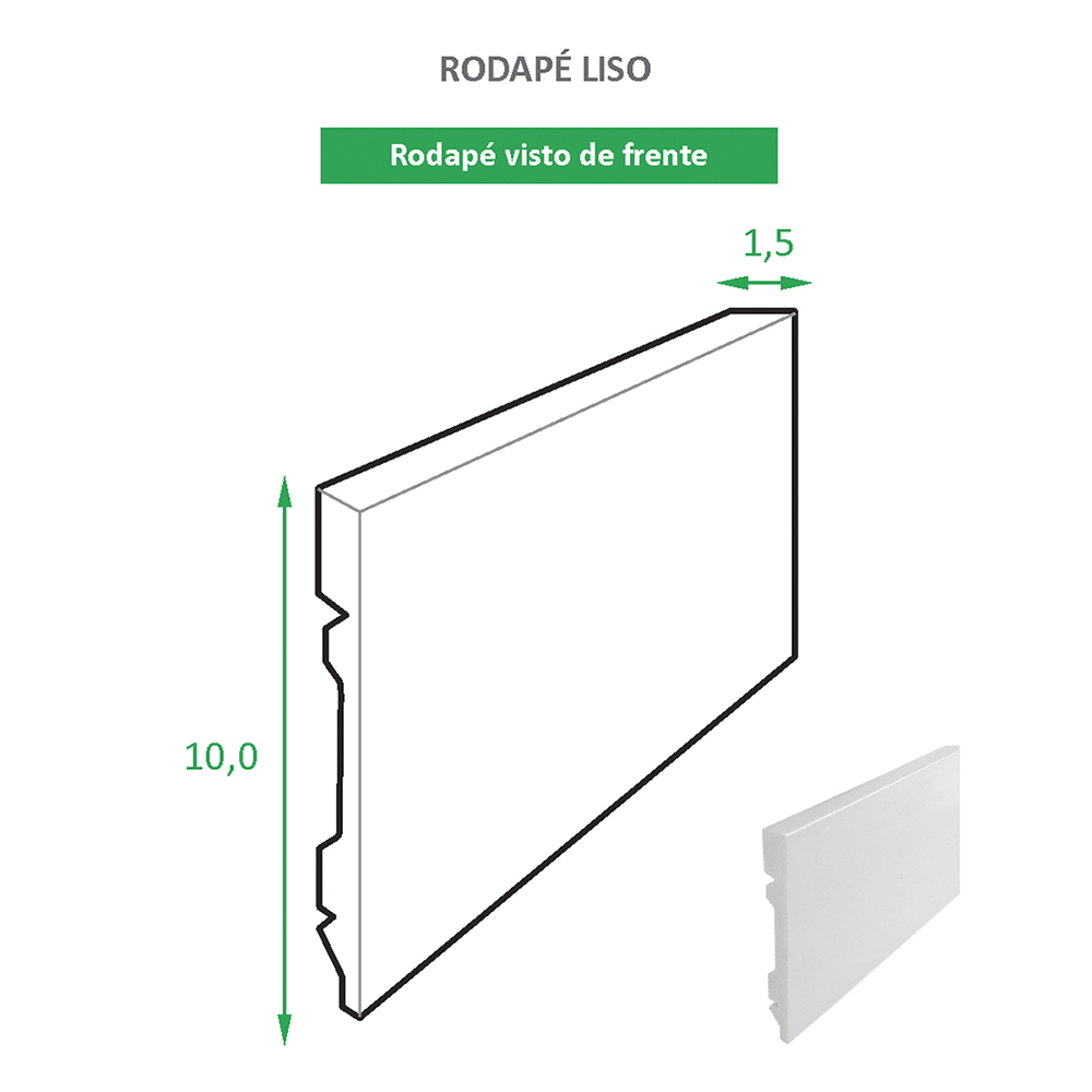 Rodapé Reno Liso 10 cm é a escolha adequada e perfeita para o acabamento de ambientes. De fácil instalação o rodapé além de lindo acabamento protege as paredes contra possíveis impactos, também no caso de limpeza do piso com pano úmido e a vantagem de poder passar fios sem precisar quebrar a parede.