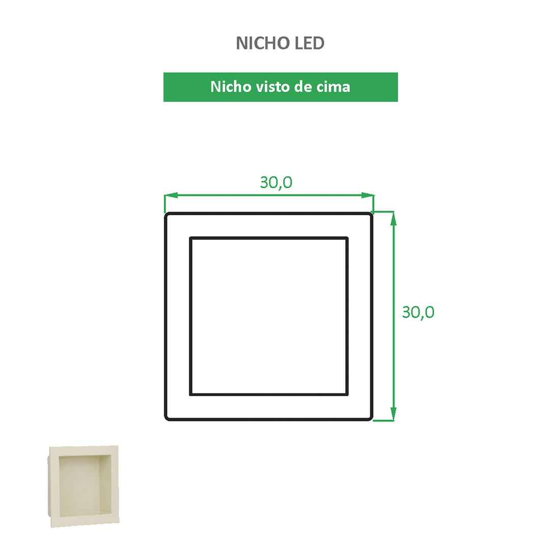 Nicho de Embutir c/ LED 30×30 BEGE
