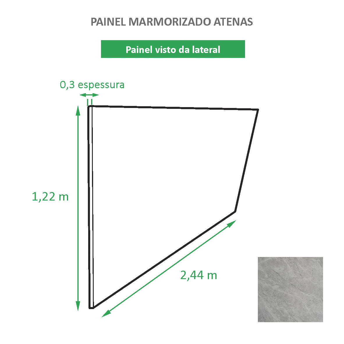 O Painel Marmorizado em PVC é vendido em caixas de papelão, sendo cada produto composto por uma placa.