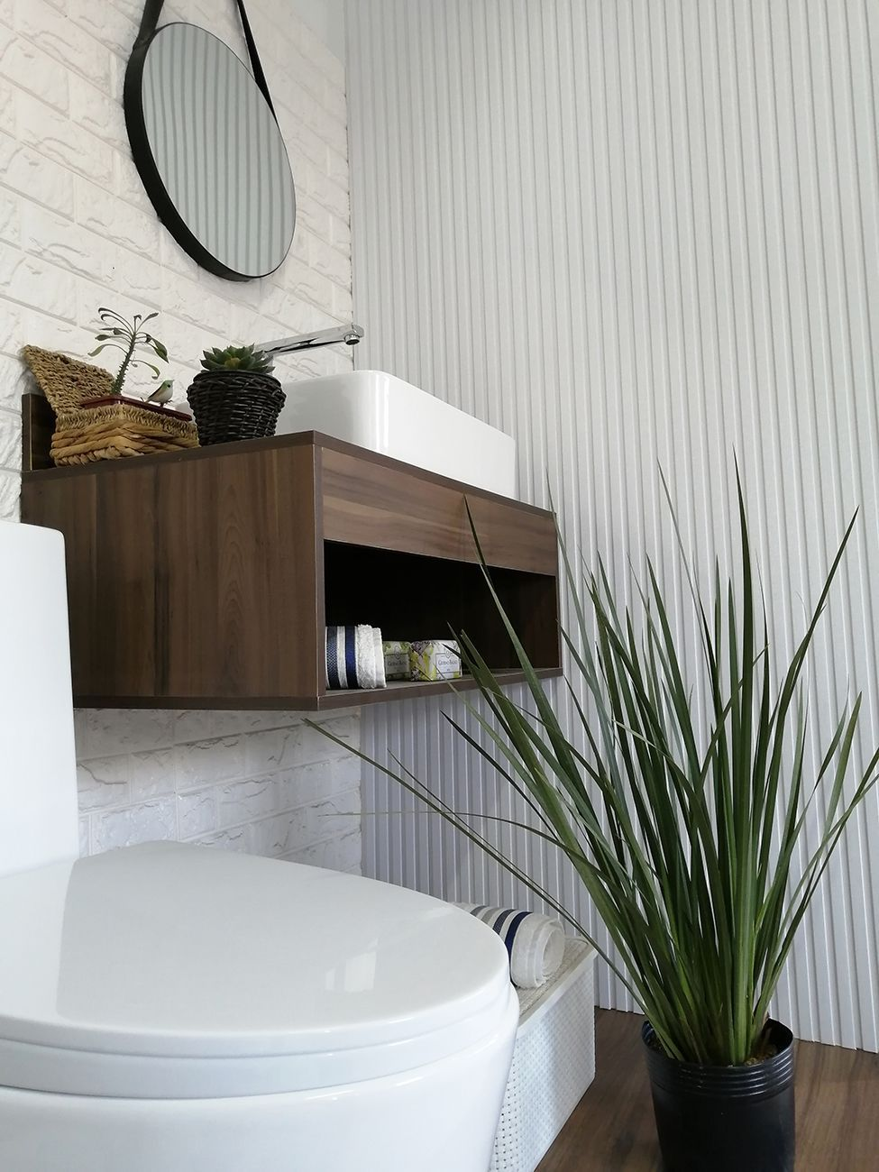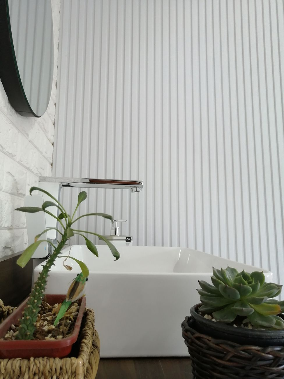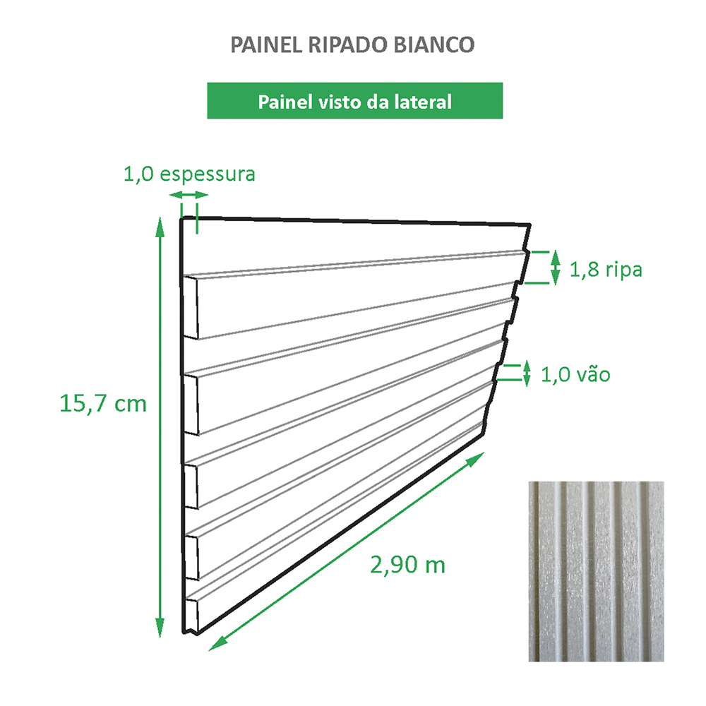 Material do Painel WPC – composto de madeira com resina plástica. Não mofa, não empena, não tem problema com umidade, não pega cupim e tem garantia de 5 anos.