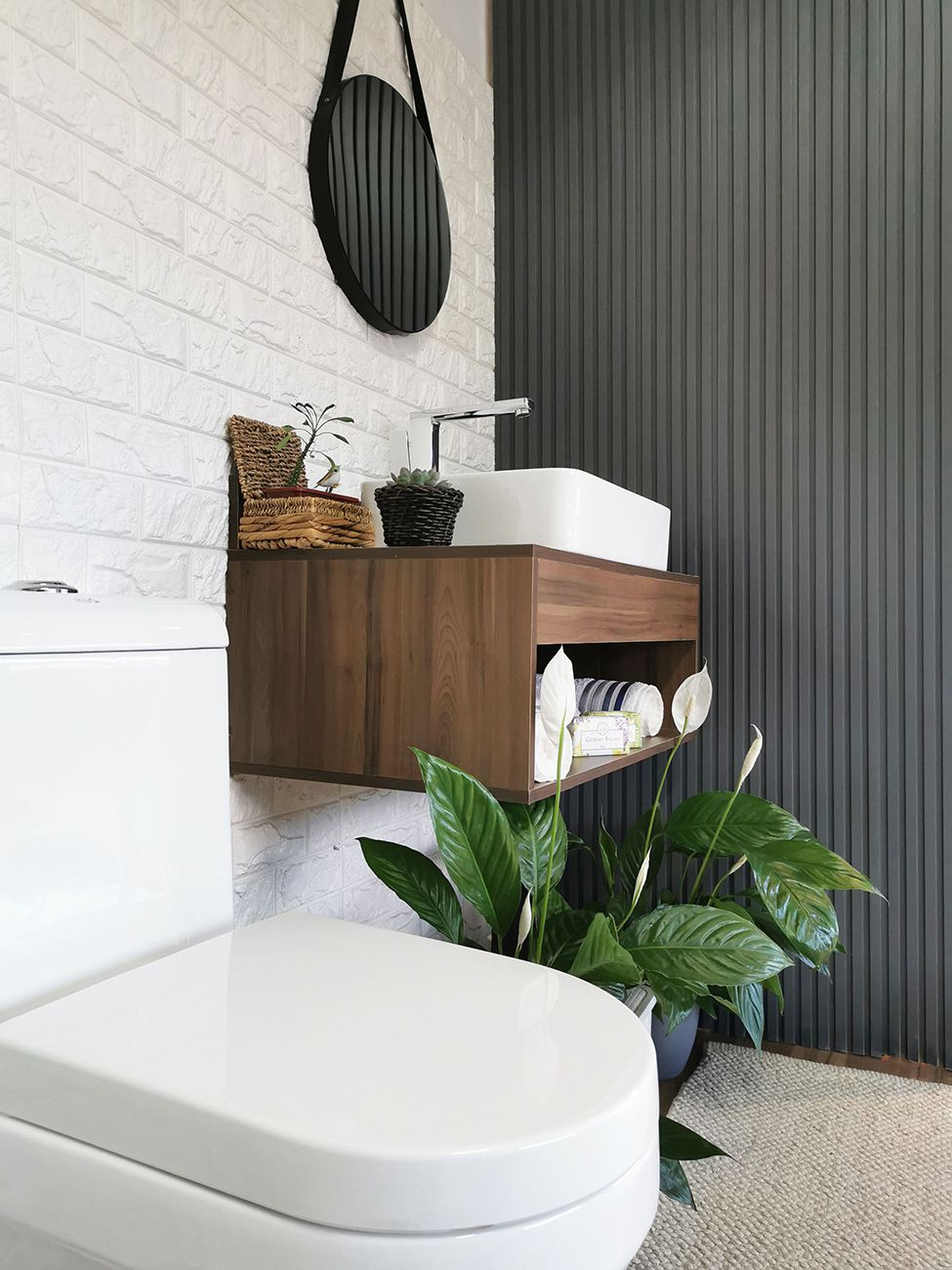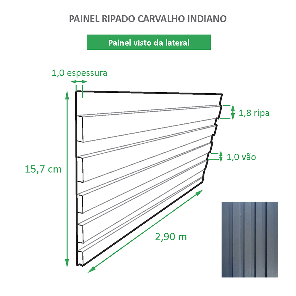 Material do Painel WPC – composto de madeira com resina plástica. Não mofa, não empena, não tem problema com umidade, não pega cupim e tem garantia de 5 anos.