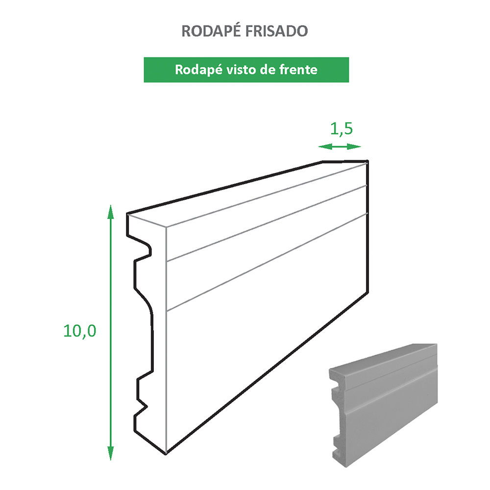Rodapé Reno Frisado 10 cm é a escolha adequada e perfeita para o acabamento de ambientes. De fácil instalação o rodapé além de lindo acabamento protege as paredes contra possíveis impactos, também no caso de limpeza do piso com pano úmido e a vantagem de poder passar fios sem precisar quebrar a parede.