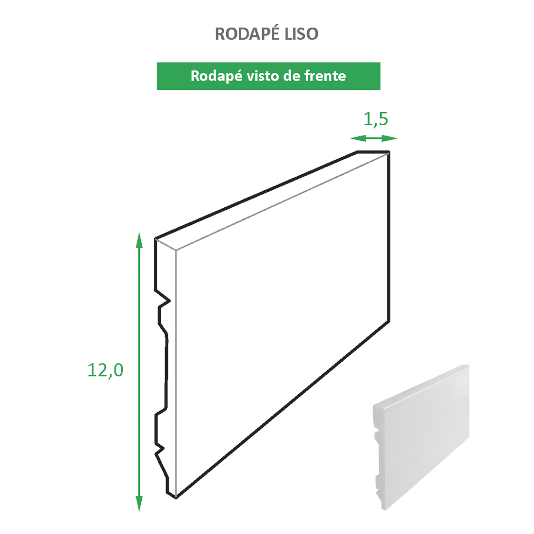 Rodapé Reno Liso 12 cm é a escolha adequada e perfeita para o acabamento de ambientes. De fácil instalação o rodapé além de lindo acabamento protege as paredes contra possíveis impactos, também no caso de limpeza do piso com pano úmido e a vantagem de poder passar fios sem precisar quebrar a parede.